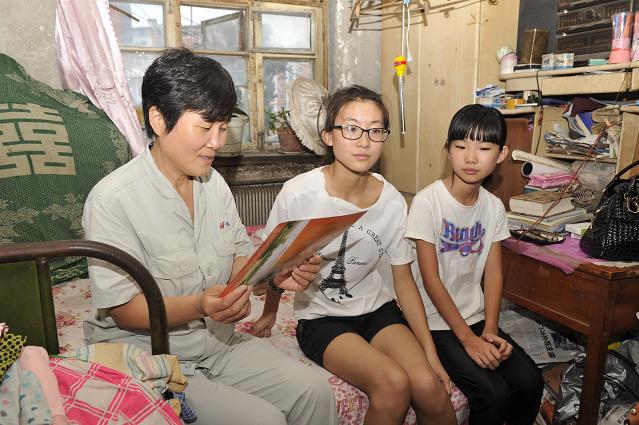.集團(tuán)黨委副書記孫淑君(左一)讀著孩子的錄取通知書。