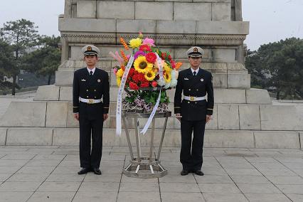 4月1日下午,我們在系教員常路賓帶領(lǐng)下,來到位于錦州的遼沈戰(zhàn)役紀念館,向英雄紀念碑敬獻花籃。儀式在雄壯激昂的《獻花曲》中拉開序幕,兩名禮兵邁著鏗鏘有力的禮步將花籃緩緩送到紀念塔正前方。花籃挽聯(lián)上寫道:“功業(yè)常齊天地永,紅旗自由后人擎;中國人民解放軍海軍工程大學(xué)敬挽?!痹谥鞒秩说慕M織下,我們統(tǒng)一脫帽,向烈士紀念塔默哀一分鐘。并重溫了入伍宣誓。最后,教員對我們說道:“同志們,歷史證明,強國必先強軍。今天的你們是以共和國未來海軍軍官的身份來到此地,更應(yīng)當(dāng)學(xué)習(xí)先烈們的優(yōu)秀品質(zhì),不斷磨礪自己,努力提升自己,在強軍興軍的征程上奉獻自己的青春熱血!”