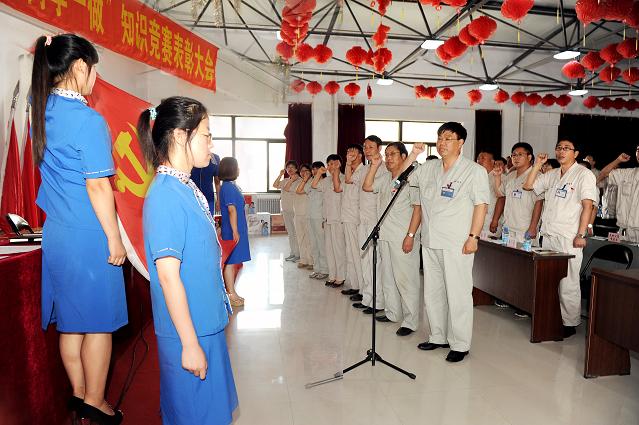 在重溫入黨誓詞環(huán)節(jié),今年加入中國(guó)共產(chǎn)黨的預(yù)備黨員和在場(chǎng)的全體黨員在黨委書(shū)記、董事長(zhǎng)劉義同志的帶領(lǐng)下,宣讀誓詞:“我志愿加入中國(guó)共產(chǎn)黨,擁護(hù)黨的綱領(lǐng),遵守黨的章程……”。黨員們舉起右拳,在鮮紅的黨旗下莊嚴(yán)宣誓,立下自己對(duì)黨忠誠(chéng)的誓言,表達(dá)了為黨的事業(yè)奮斗終身的決心和愿望。
