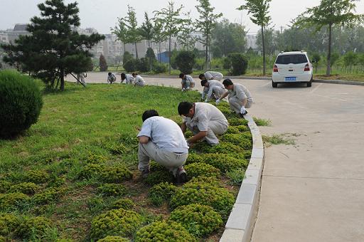 會后,一場黨員帶頭、員工共同參與的集體除草活動熱火朝天地開展起來。大家有的用手拔、用的用鐮刀割、有的用袋裝、用的用車推,忙的不亦樂乎??煺邘椭撸贻p者幫助年長者,大家一邊勞動,一邊互相問候,其樂融融。表面的雜草連根拔起,死角區(qū)域進(jìn)行了二次清除。烈日炎炎下,盡管很多人的臉上流下了晶瑩的汗滴,但他們依然在繼續(xù),沒有停歇。功夫不負(fù)有心人,經(jīng)過2個小時的辛勤勞動,責(zé)任區(qū)域內(nèi)的雜草、雜物被徹底清除。當(dāng)大家回望整潔有序的草坪時,心中無比喜悅。