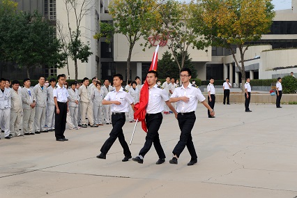 雖然在學(xué)校參加了大大小小的升旗儀式也有一年之久了,經(jīng)驗也算比較豐富的了,但是在航星集團(tuán),在這么多員工面前升旗我還是第一次。這不僅僅是一次升旗,這還是向集團(tuán)的員工們展示我們的機(jī)會,我們來到這里,一舉一動都代表著學(xué)校的形象,再加上上屆學(xué)長的表現(xiàn)非常出色,這讓我感覺到無比的壓力。所以在得到升旗任務(wù)的時候我們就開始準(zhǔn)備了,經(jīng)過幾次的篩選,選出了包括我在內(nèi)的幾個護(hù)旗手,他們都是方隊出身,隊列動作過硬,是護(hù)旗手的不二人選。再有就是升旗的隊形排列,之前的學(xué)長設(shè)計得非常好,但是我們想有所創(chuàng)新,在我們幾個負(fù)責(zé)人的精心設(shè)計之下,我們又設(shè)計出了一個屬于我們自己的隊形。之后就是無數(shù)次的演練,每個環(huán)節(jié),從入場,旗手交接旗,升旗,揚旗,都經(jīng)過了研究和排練。
