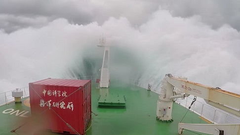 在船上的54天里,我們布放了14套潛標,回收了11套潛標,累計布放803件,回收了294件,其中也包括我們所生產的ADCP。雖然我主要負責我們的設備,但也負責了所有的潛標布放,而在布放的過程中,最常見的天氣就是高溫炎熱,因為船舶一直在赤道附近作業(yè),所以船甲板溫度在40度以上,我們常常頂著毒辣的太陽在甲板上布放,也讓布放增加了難度,而還有個自然因素就是以迅雷不及掩耳之勢襲來的暴雨,我們經常在暴雨中連續(xù)作業(yè),全身都濕透了,也只能頂著暴雨堅守戰(zhàn)地。而值得一提的是當大風以20m/s速度襲來時,浪花直接拍到了6層駕駛室的玻璃上,仿佛將要把我們吞沒,此時看著浩瀚無邊的海洋,一道道波浪不斷涌來,撞擊在船體上,發(fā)出天崩地裂的吼聲,噴濺著雪白的泡沫。是那樣的壯觀。當一切都回歸平靜的時候,又是那樣的云淡風輕。