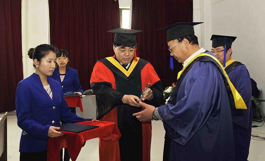 儀式在激情洋溢的樂(lè)曲中開(kāi)始。首先大連海事大學(xué)信息科學(xué)技術(shù)學(xué)院自動(dòng)化系主任李暉宣讀首批工程碩士名單。獲得大連海事大學(xué)首批工程碩士名單如下:北方航海公司王洪余、邱琦、范世偉、李忠曄、王德利、宿利楠、李海洋、王曉紅、李娜、儀表公司李鋼、海天科技公司黃帥。每一位畢業(yè)生聽(tīng)到自己的名字時(shí),都沉浸在金榜題名的幸福之中。集團(tuán)團(tuán)委書(shū)記黃亮專門為畢業(yè)生們發(fā)來(lái)賀信,并希望集團(tuán)青年員工以他們?yōu)榘駱?,不斷加?qiáng)學(xué)習(xí),努力提高專業(yè)技能水平,增強(qiáng)責(zé)任感和使命感,為給予員工創(chuàng)造良好學(xué)習(xí)和工作環(huán)境的航星集團(tuán)做出更大貢獻(xiàn)。緊接著,11名碩士畢業(yè)生身著學(xué)士服、頭戴學(xué)士帽,在歡快的樂(lè)曲聲中,精神抖擻地走上主席臺(tái)。大連海事大學(xué)信息科學(xué)技術(shù)學(xué)院副院長(zhǎng)曹德信、集團(tuán)黨委書(shū)記、董事長(zhǎng)劉義為畢業(yè)生撥流蘇,進(jìn)行學(xué)位授予。當(dāng)工程碩士們從領(lǐng)導(dǎo)手中鄭重地接過(guò)學(xué)位證書(shū)的瞬間,激動(dòng)與喜悅之情溢于言表,他們向領(lǐng)導(dǎo)們深深鞠躬致謝。曹德信副院長(zhǎng)發(fā)表了熱情洋溢的講話。他首先祝賀11名工程碩士順利畢業(yè),并為他們?nèi)〉玫某煽?jī)感到驕傲,希望他們?cè)诠ぷ鲘徫簧夏軌蚴冀K堅(jiān)持學(xué)習(xí)、堅(jiān)韌不拔、愛(ài)崗敬業(yè)、腳踏實(shí)地地工作,為航星集團(tuán)的發(fā)展貢獻(xiàn)自己的力量。同時(shí),曹院長(zhǎng)祝愿畢業(yè)生們前程什錦,歡迎?;啬感?纯?。